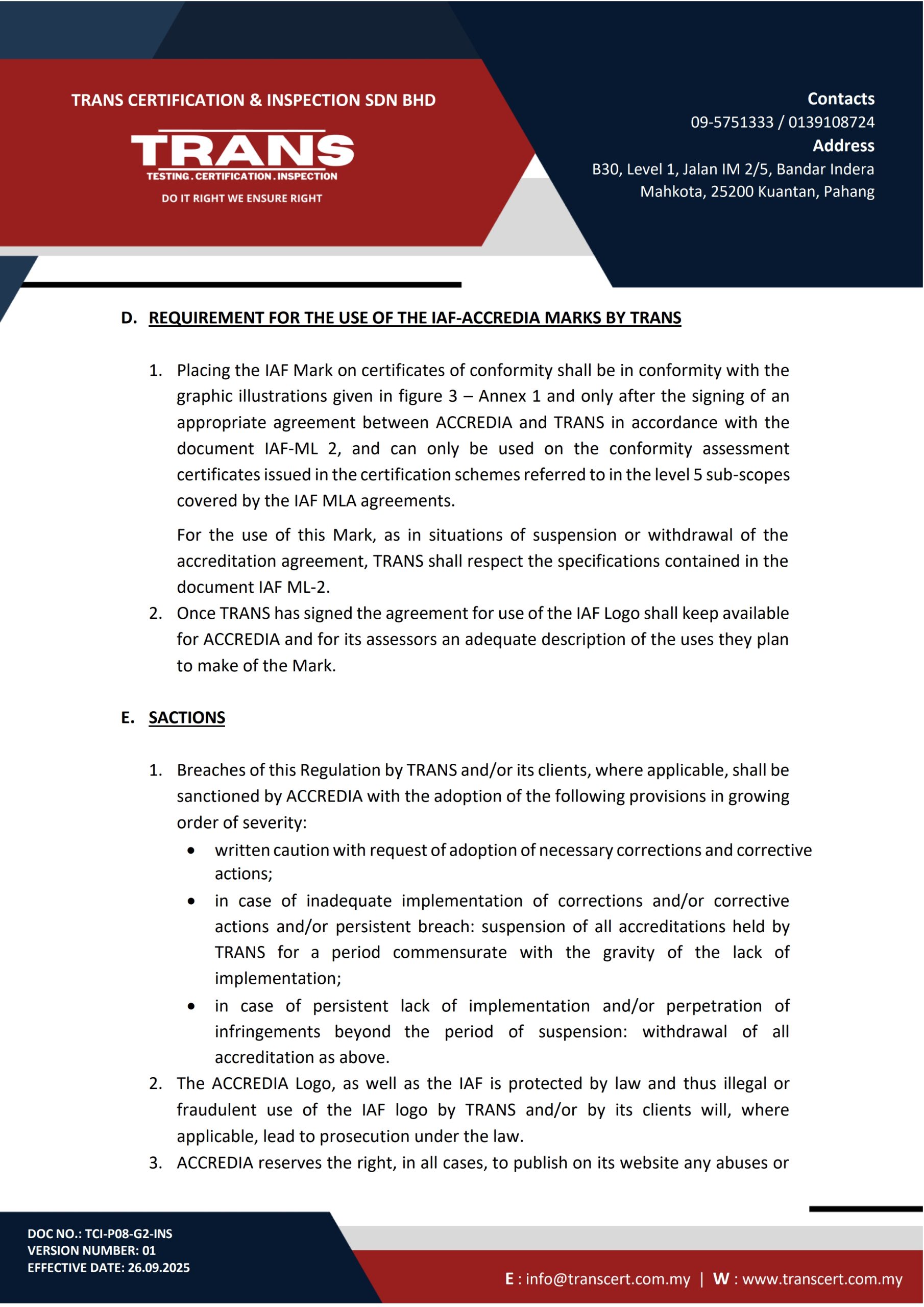 Guidelines of Granting, Extension & Reduction of Scope, Suspension, Withdrawal & Termination of Certification